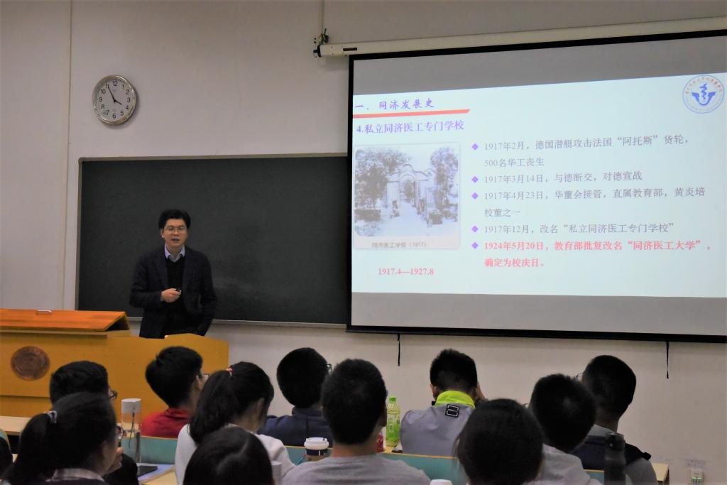 秦选斌书记以“传承同济精神,济人济世济天下”为主题,从同济发展史、同济人、同济事、同济精神四个方面,讲述了同济发展的历程,建校以来培养出的医学领域杰出人才,同济发展历程中的大事件,以及“团结、严谨、求实、奋进”的同济精神,对同学们进行了家国情怀、人文情怀教育,帮助同学们树立起社会主义核心价值观。他勉励新时代大学生应该担当起应该的担当,勇做负重前行之人,不忘初心、牢记使命,勇攀世界科学高峰。