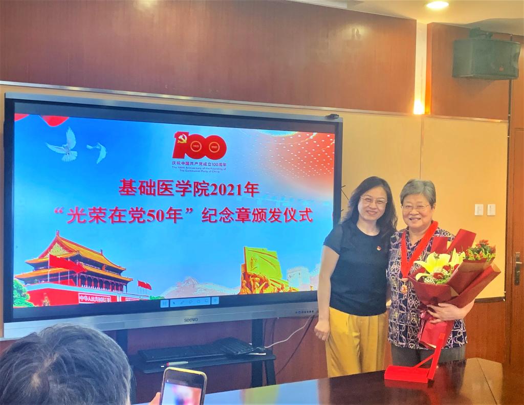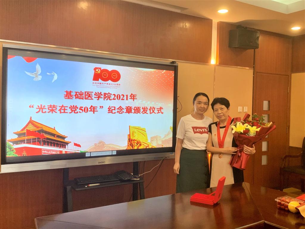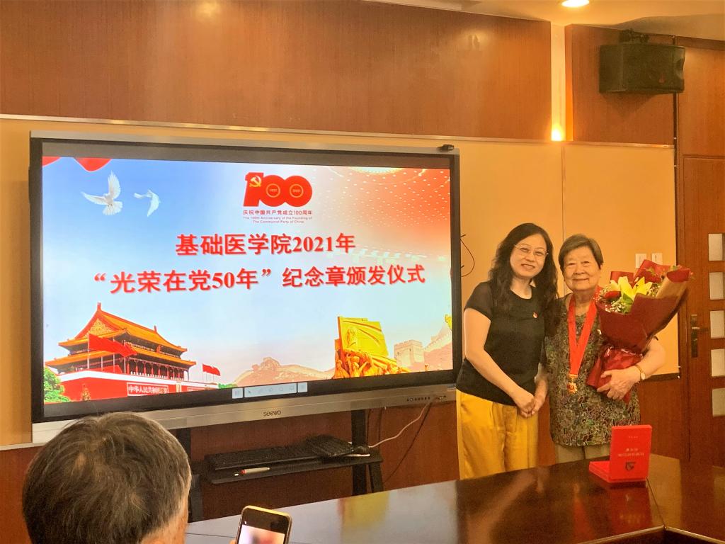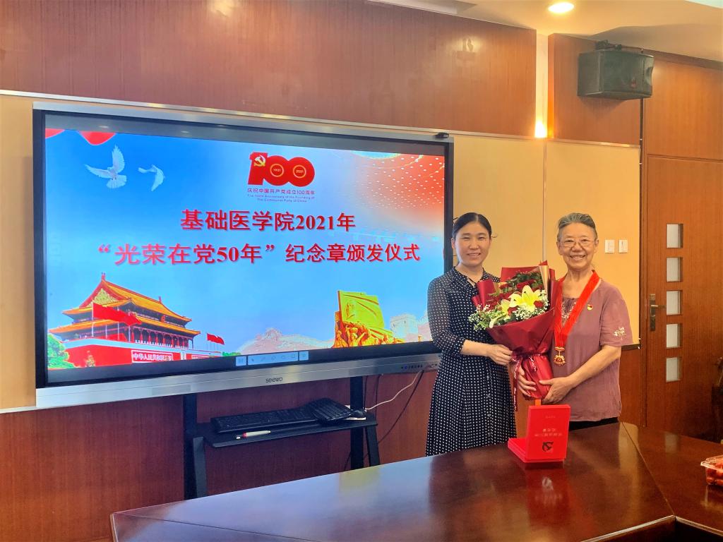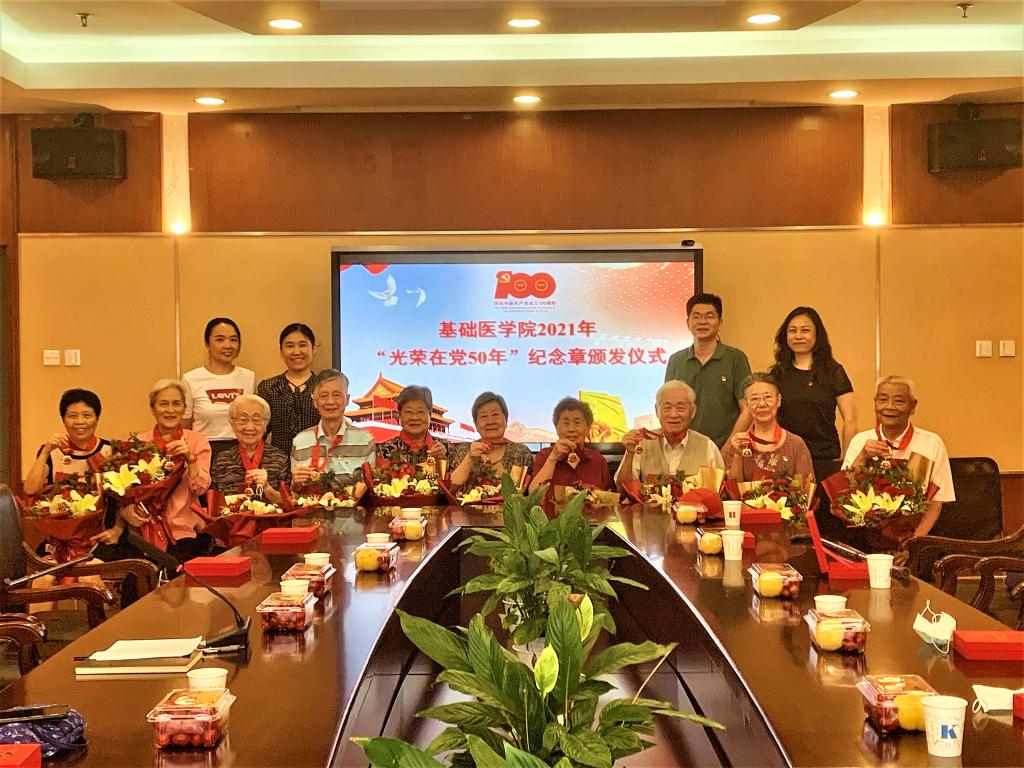 学院对身体不宜参加活动的7位老同志上门送去纪念章,其他在外地9位老党员的纪念章由支部书记或子女代领,负责将纪念章发放到位。